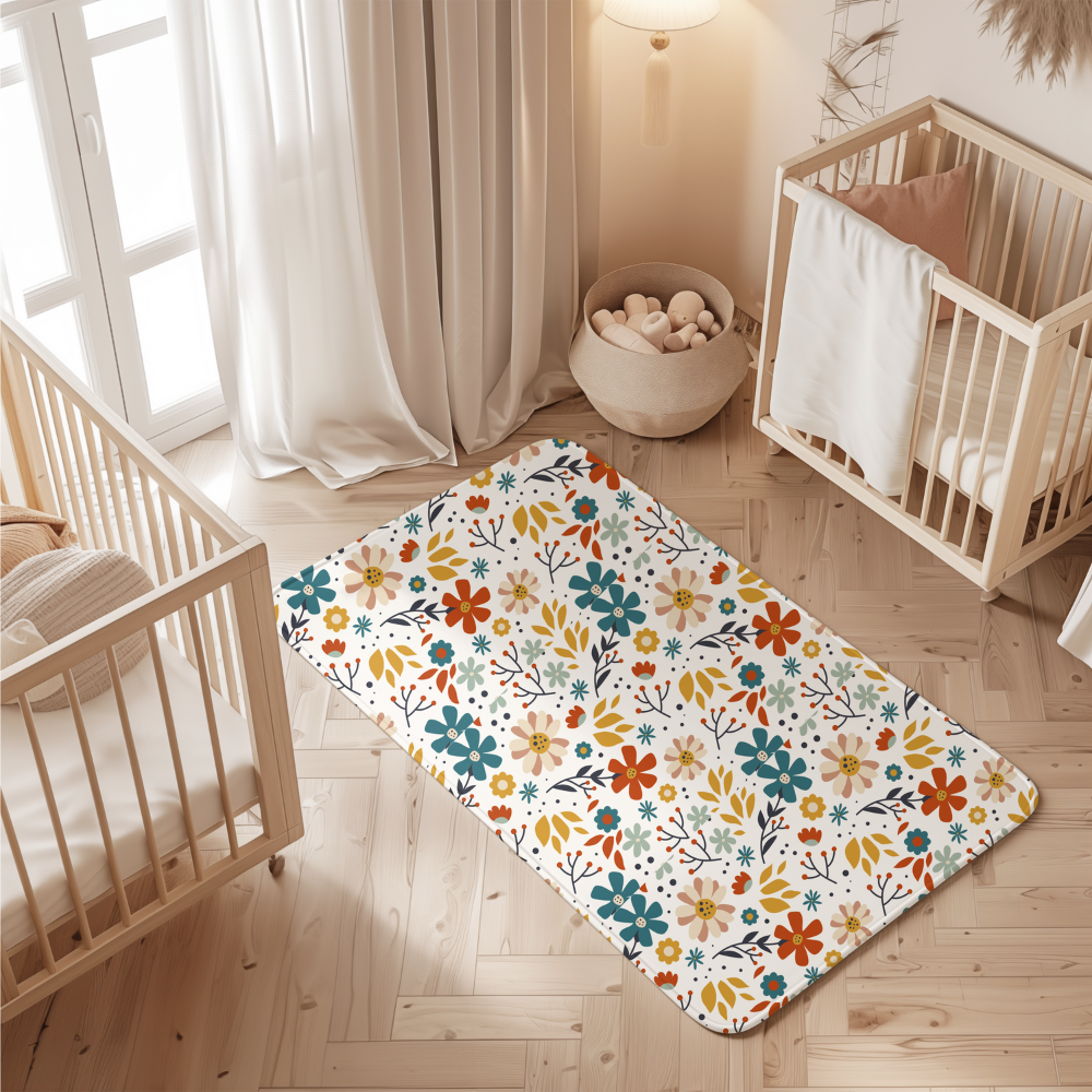 Floral Print Premium Matty: Leak-proof, super-absorbent baby mats designed for everyday use. Four-layer protection keeps your baby comfortable and protects your bed, sofa, car, and floors. Reusable, soft, and lint-free perfect for diaper changes, playtime, sleep time, and more.