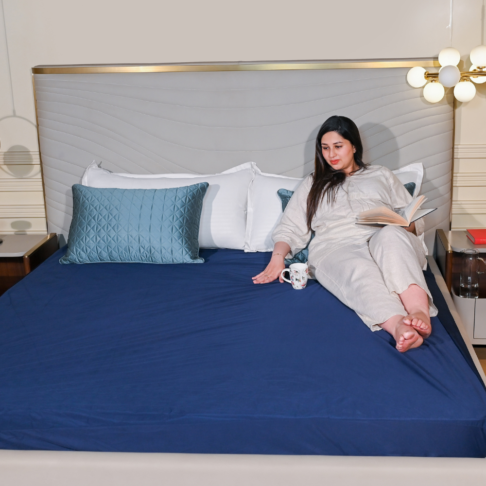 Lycra Navy Blue Waterproof Mattress Protector
