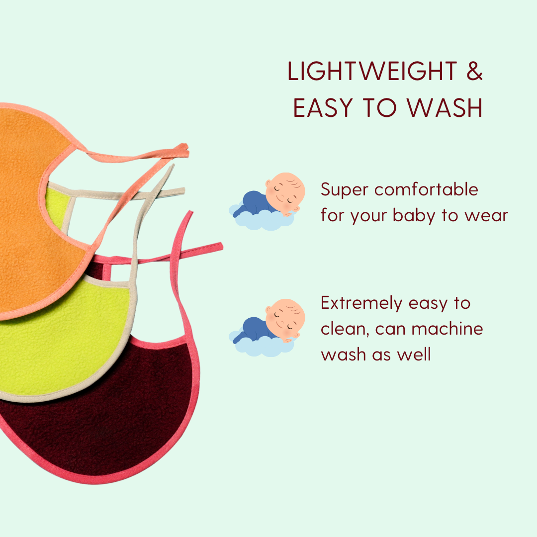 Peach + Yellow + Maroon - Absorbent Bibs (Pack of 3)