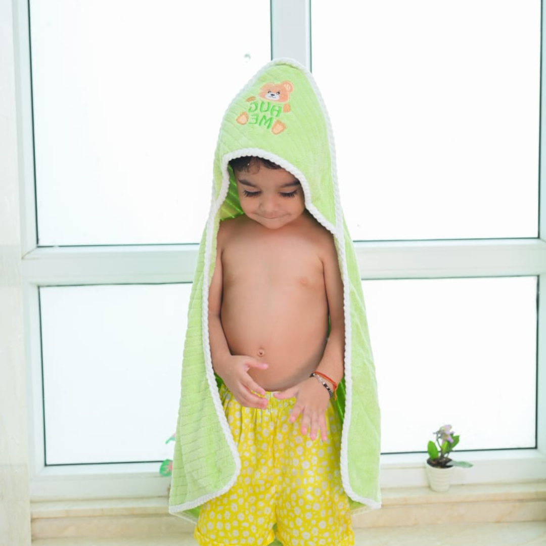 The Hug Me Hooded Towel features a thoughtfully designed hood that provides extra warmth and coverage for your baby’s head, keeping them cozy and snug after bath time. The hood is not only practical for drying wet hair but also adds an adorable touch to the towel’s overall design. It’s perfect for adding a sense of security and comfort, making your little one feel like they’re wrapped in a soft, loving hug!
