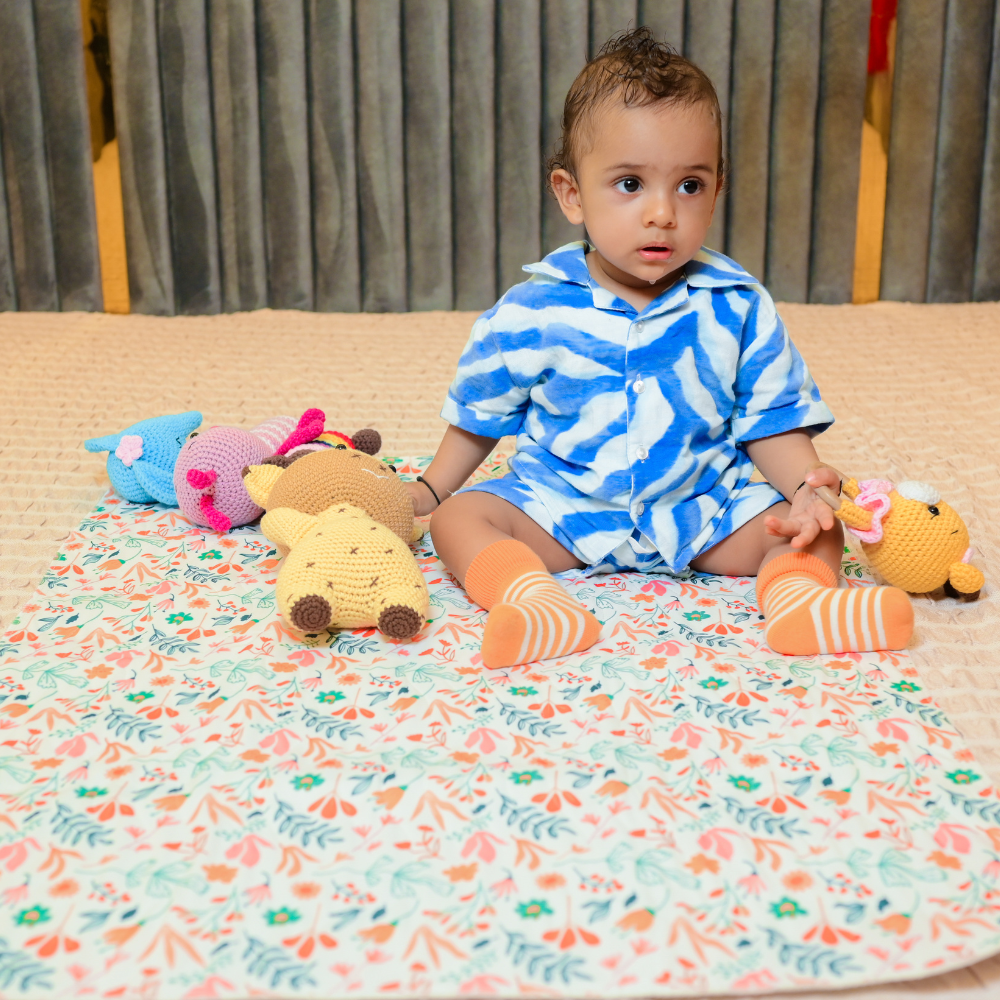Each Quick Dry Sheet Playmat is made from non-toxic, hypoallergenic materials. The fun patterns and colors make tummy time and playtime more enjoyable for little ones.